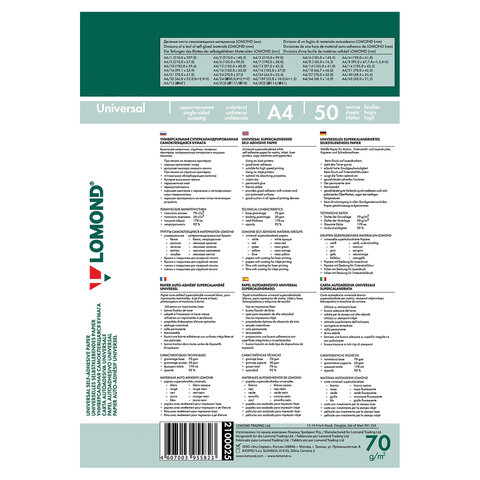 Самоклеящиеся этикетки на листах формата А4 позволят быстро и качественно подготовить адресные наклейки, регистрационные номера, аннотации при помощи лазерного или струйного принтера.