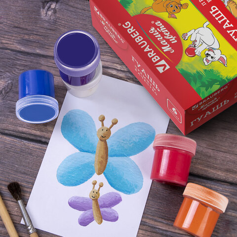 Гуашь для детского творчества и декоративно-оформительских работ по бумаге, картону, холсту, дереву. Краски обладают яркими и насыщенными цветами, а также однородным окрашиванием.