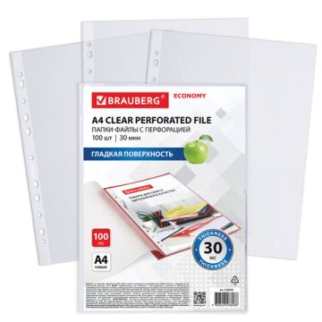 Перфорированные папки-файлы BRAUBERG предназначены для хранения документов в папке с любым кольцевым механизмом или скоросшивателем.