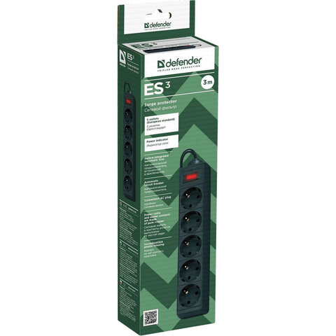 Сетевой фильтр Defender ES 3.0 создан для защиты, подключаемой с его помощью электроники от различных сетевых неполадок, помех и коротких замыканий. Достаточно большая, 3 метра, длина кабеля и наличие 5 розеток делают фильтр оптимальным для офиса.