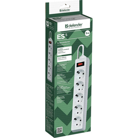 Сетевой фильтр DEFENDER ES на «борту» имеет пять розеток евростандарт, защищает электронную технику от короткого замыкания, перегрузок по току и импульсных помех. Компактный корпус сетевого фильтра выполнен из прочного негорючего пластика, сетевой шнур и контакты розеток - из чистой меди.