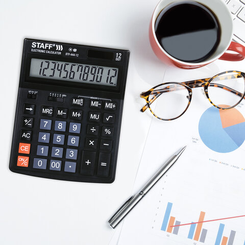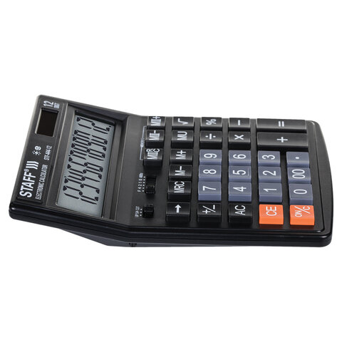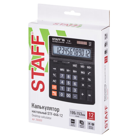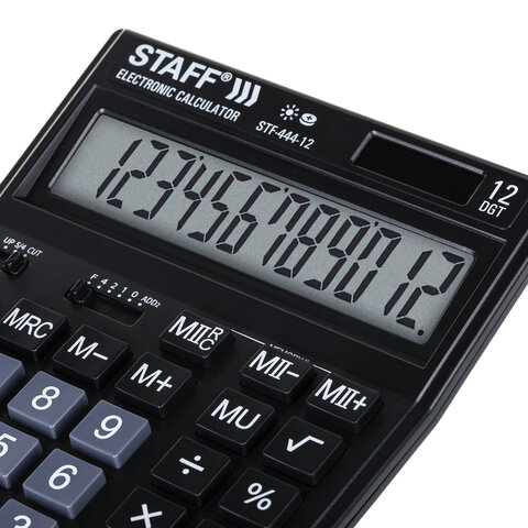 Простой в использовании и точный в расчётах настольный калькулятор STAFF STF-444-12 выполняет все необходимые вычисления на работе и дома. Кнопки нажимаются легко и приятно, эргономичный наклон корпуса позволяет работать с максимальным комфортом.