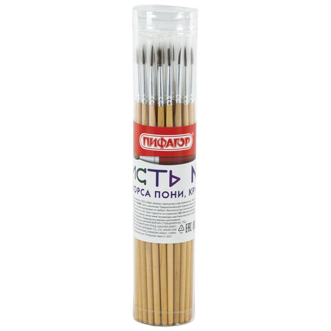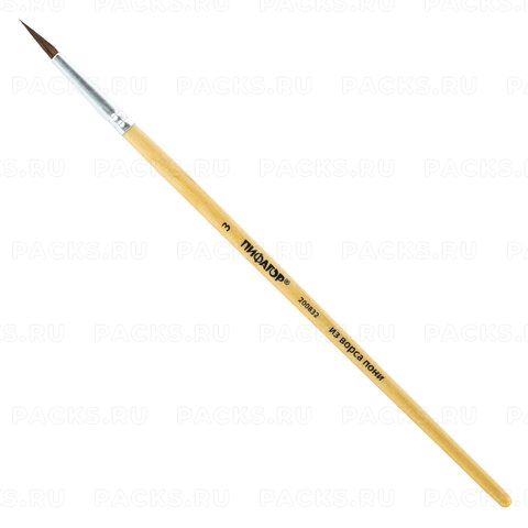 Кисть из волоса пони отлично впитывает и отдает краску, хорошо держит форму, долговечна и надежна. Кисть №3 позволит прорисовывать мелкие детали. Деревянную лакированную рукоятку кисти удобно держать в руке.