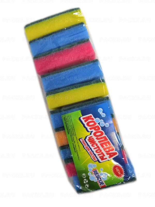 Губка для мытья посуды, состоящая из цветного ппу и абразивного слоя. Размер- 80х50х24. 10 губок в 1 единице, упакованы в БОПП с логотипом или этикеткой.