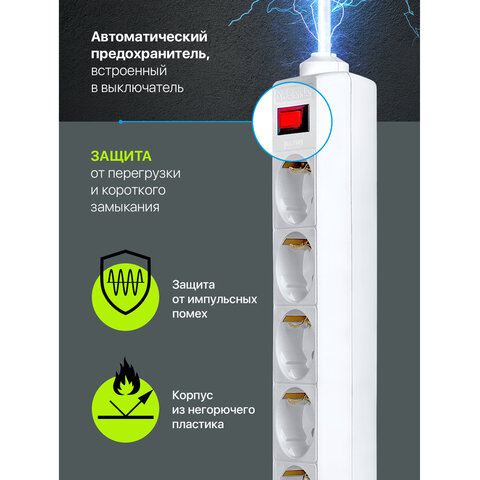 Сетевой фильтр DEFENDER ES на «борту» имеет пять розеток евростандарт, защищает электронную технику от короткого замыкания, перегрузок по току и импульсных помех. Компактный корпус сетевого фильтра выполнен из прочного негорючего пластика, сетевой шнур и контакты розеток - из чистой меди.